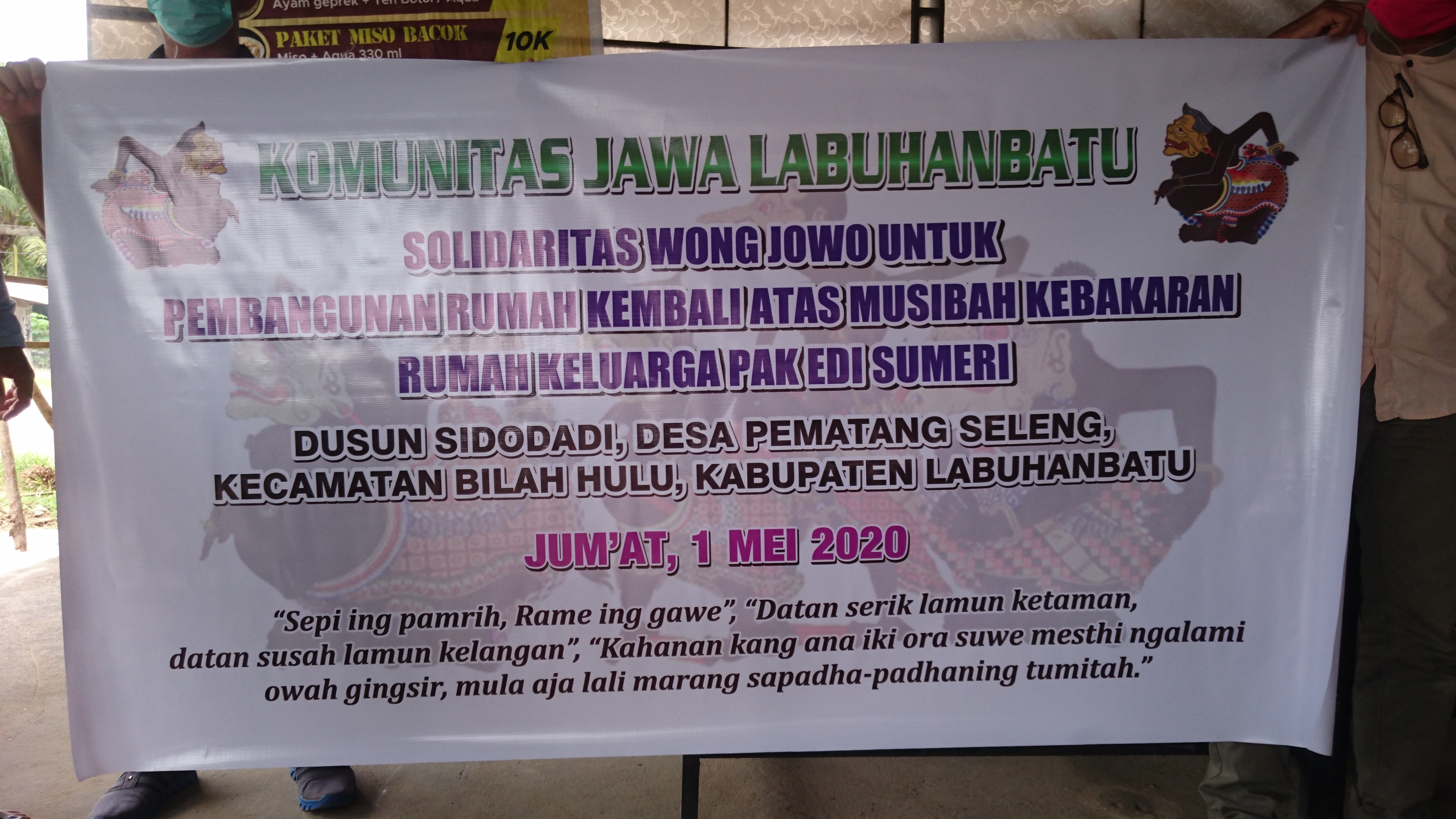 Terima kasih Kepada seluruh Anggota Komunitas Jawa Labuhanbatu atas Dukungan, Sumbangsih dan Kerja sama yang ikhlas diberikan, terutama kepada para Donatur. Semoga ini semua akan menjadi Amal baik dan Tabungan Akhirat kelak. Semoga sehat selalu, lancar rezeki, usaha dan pekerjaannya. Aamiin..