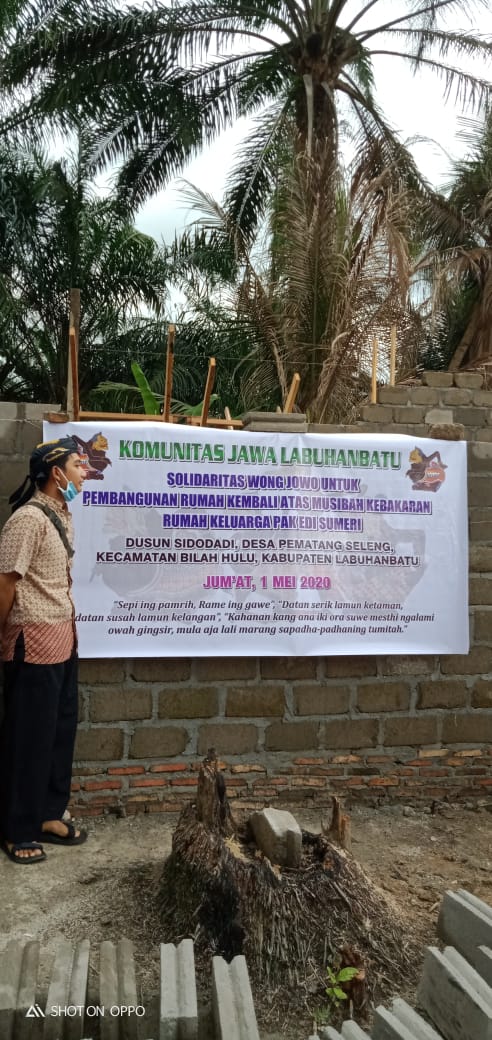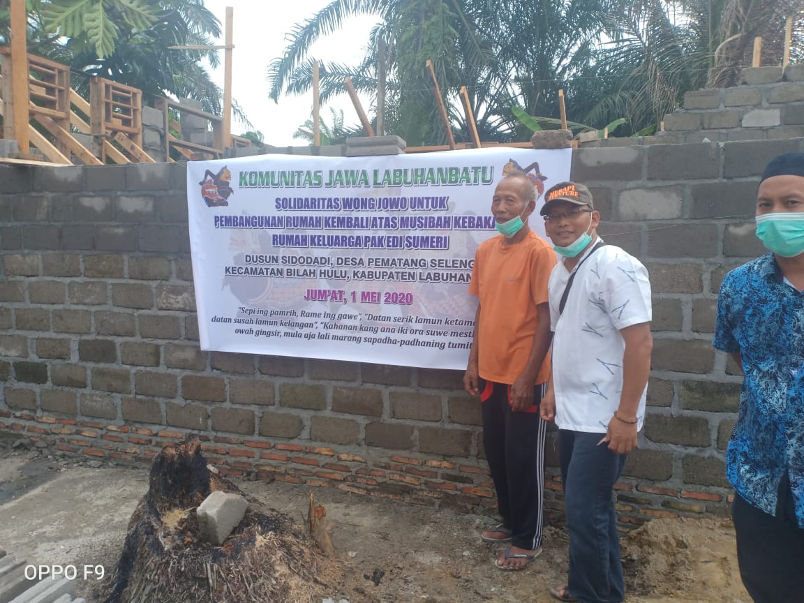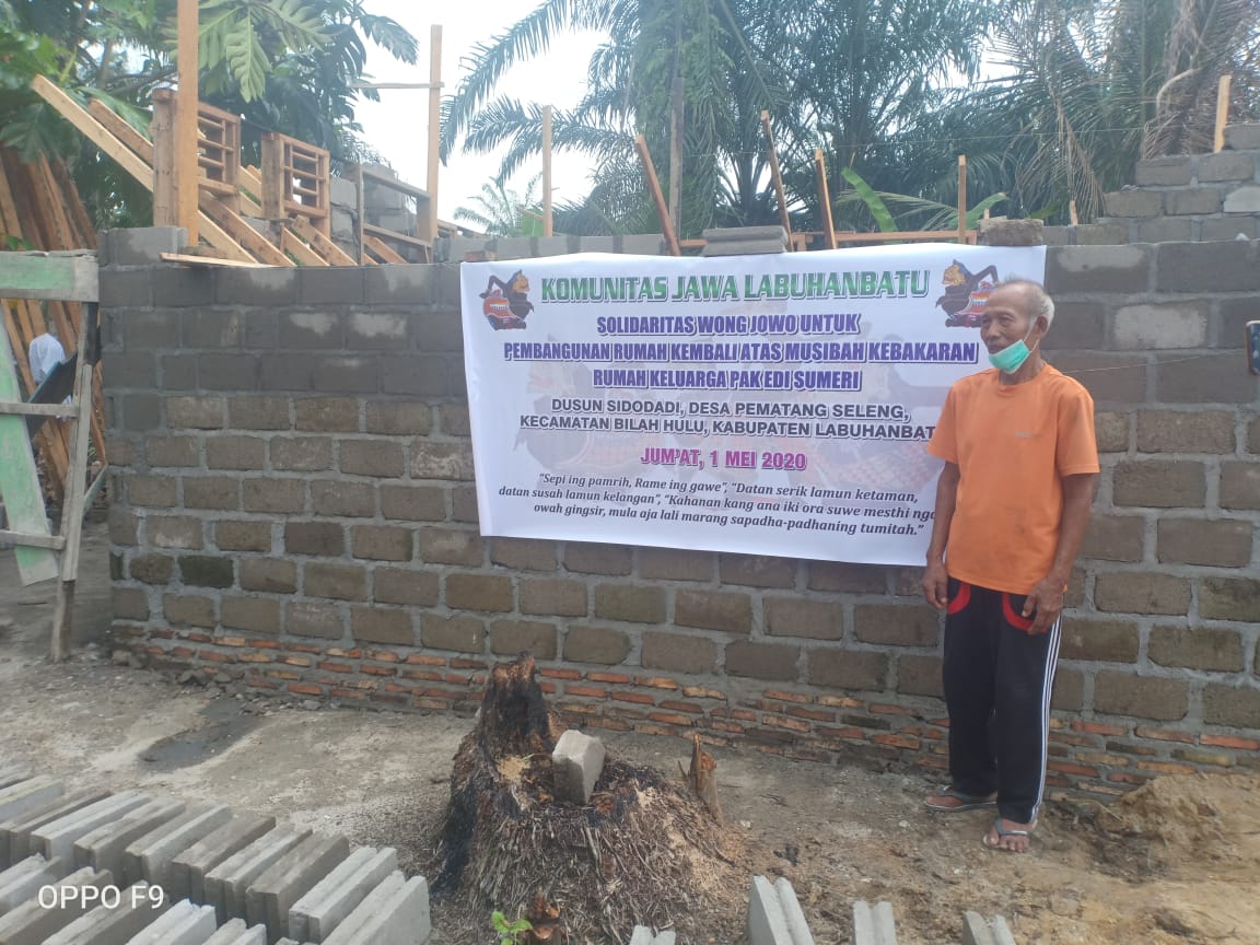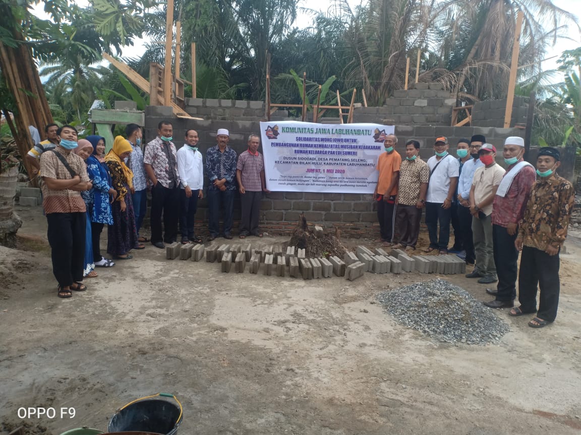 KOMUNITAS JAWA LABUHANBATU dalam kegiatan Sosial memiliki Program "KOMUNITAS JAWA LABUHANBATU BERBAGI". Untuk kegiatan Sosialnya yang Pertama Sekali dilaksanakan adalah membantu pembangunan kembali rumah Bapak Edi Sumeri yang mengalami musibah kebakaran rumahnya di Dusun Sidodadi, Desa Pematang Seleng, Kec. Bilah Hulu, Kab. Labuhanbatu.
