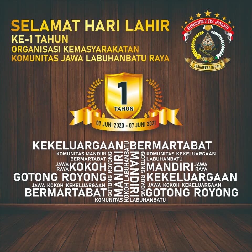 Saya Ulfian Hamdani, S.Pd., M.A.P, Ketua Umum Komunitas Jawa Labuhanbatu Raya mengucapkan Terima kasih yang tidak terhingga kepada semua Anggota dan Pengurus Organisasi Komunitas Jawa Labuhanbatu Raya, terkhusus kepada peserta yang menghadiri dan ikut serta berperan aktif dalam kegiatan Peringatan Hari Lahir Organisasi Komunitas Jawa Labuhanbatu Raya yang Pertama. Serta Panitia yang bahu-membahu saling berkoordinasi, bertugas dan bekerjasama sehingga acara tersebut berjalan sukses dan meriah.