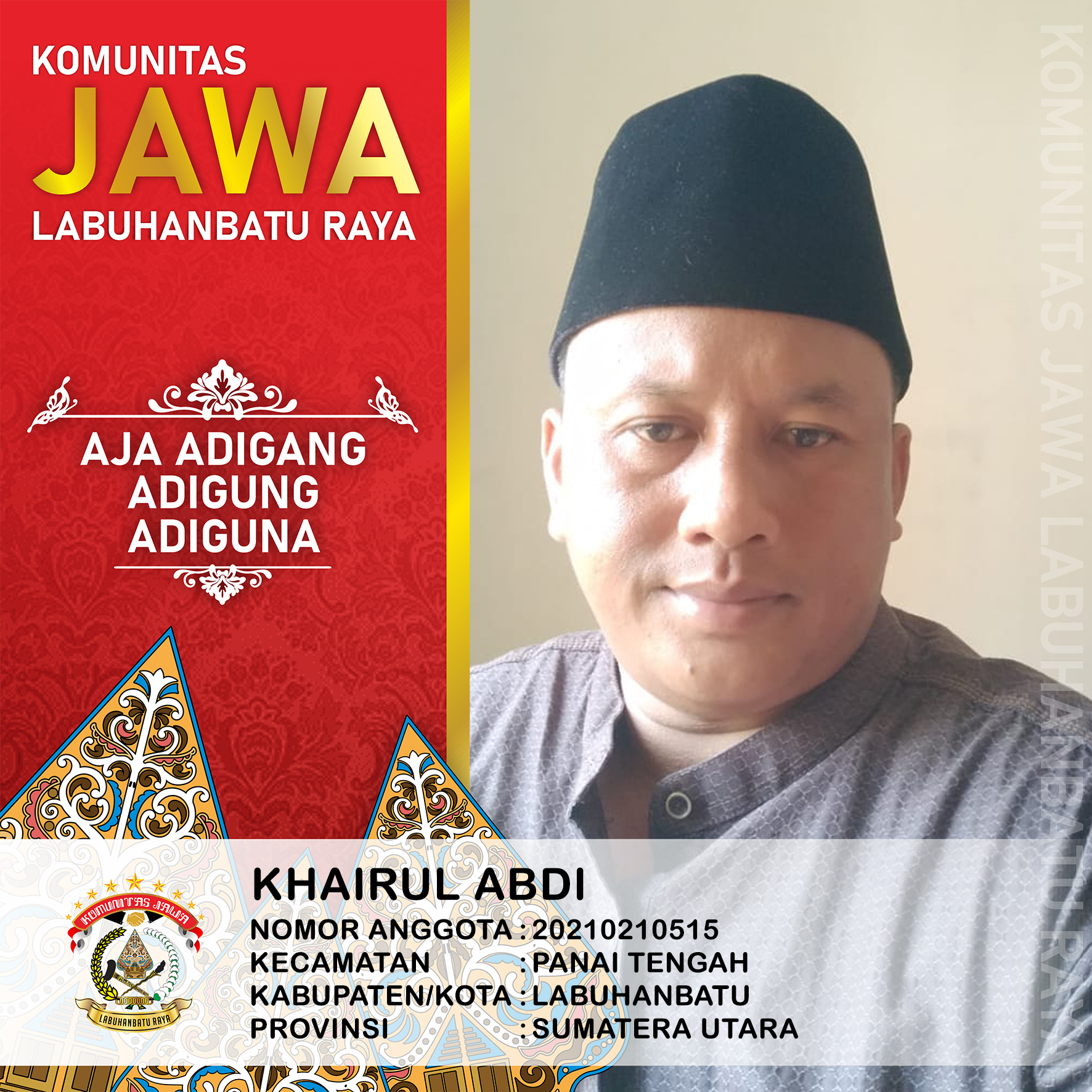 | Status Keanggotaan | : | Pengurus DPK Panai Tengah |